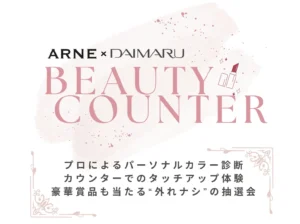 🎁 パーソナルカラー診断特典: 似合うカラー分析&7ブランドでリップのタッチアップ / タッチアップ特典: 対象ブランド2店舗でタッチアップ→スタンプ付与 / 抽選会特典: ラ・プレリー現品・アルビオン現…