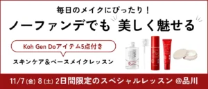 毎日のメイクにぴったり!ノーファンデでも美しく魅せるKoh Gen Doアイテム5点付きスキンケア&ベースメイクレッスン