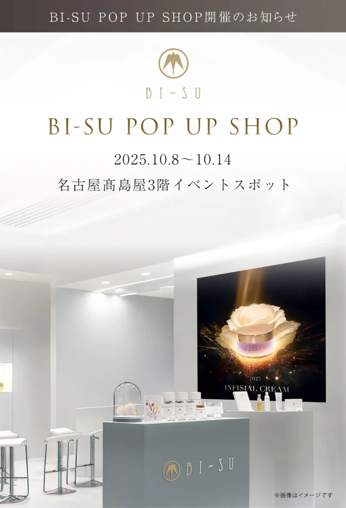 天然アナツバメの巣を使用したサステナブルコスメブランド「BI-SU(ビース)」が、ジェイアール名古屋タカシマヤにて2回目のポップアップを開催。人気の「エキスゼリースティック」や数量限定の「BI-SU16(食べるタイプ)」に加え、シャンプー・ローション・セラムなど、ツバメの巣由来の美容成分を贅沢に配合したアイテムが登場。注目は、BI-SU最高峰のスキンケア「インフィシアルクリーム」。その場で体感できる貴重な機会。