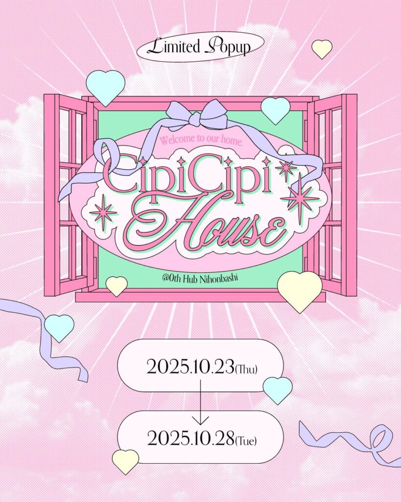 CipiCipi(シピシピ)が「デューイフィルムティント R」発売を記念して、体験型POP UPイベント「CipiCipi House」を開催。新商品の先行発売に加え、来場者はアンケート回答やSNSフォローでノベルティを受け取れるほか、購入金額に応じた限定グッズも用意。かわいい世界観の中でCipiCipiの最新アイテムを体験できる特別な6日間。