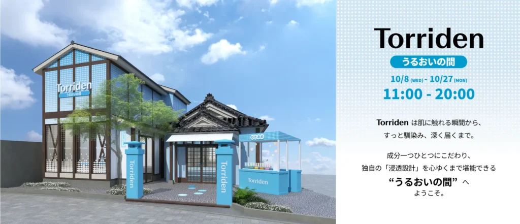 韓国スキンケアブランド「Torriden(トリデン)」が、日本初のポップアップストア『Torriden うるおいの間』を原宿・GATEで開催。オンライン限定品を含む全ラインアップの販売に加え、新商品の「セルメイジング コラーゲン リップエッセンス」先行発売や、限定の「セルメイジング ミニアンプル セット」も登場。ブランド独自の「浸透設計」を体感できる3つのエリア構成で、トリデンの哲学と世界観を楽しめる特別な空間になっている。